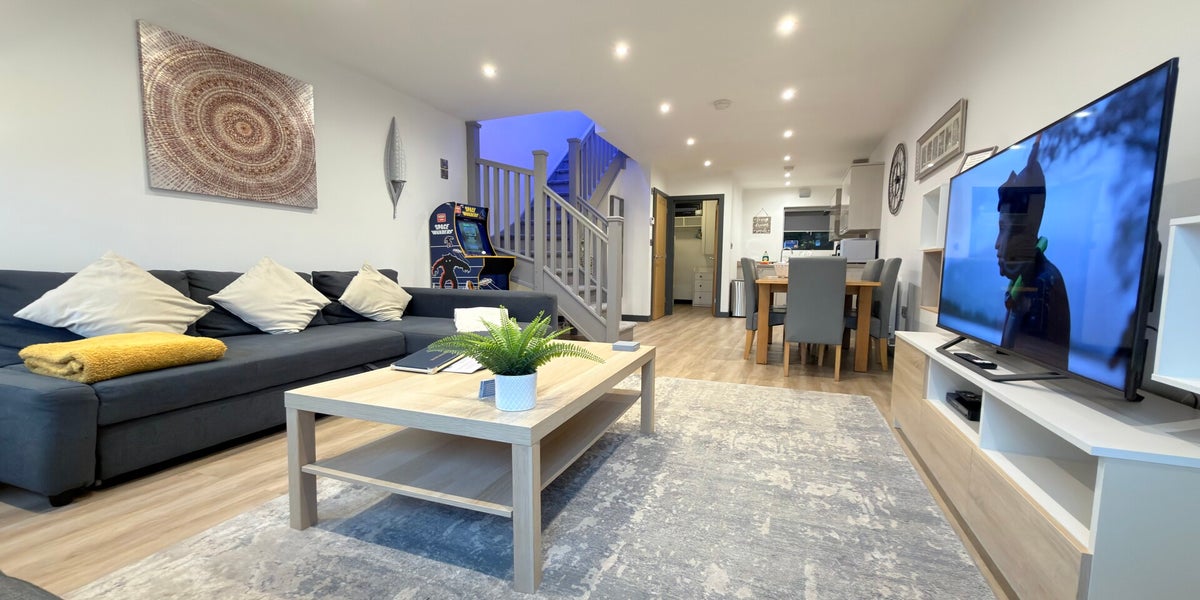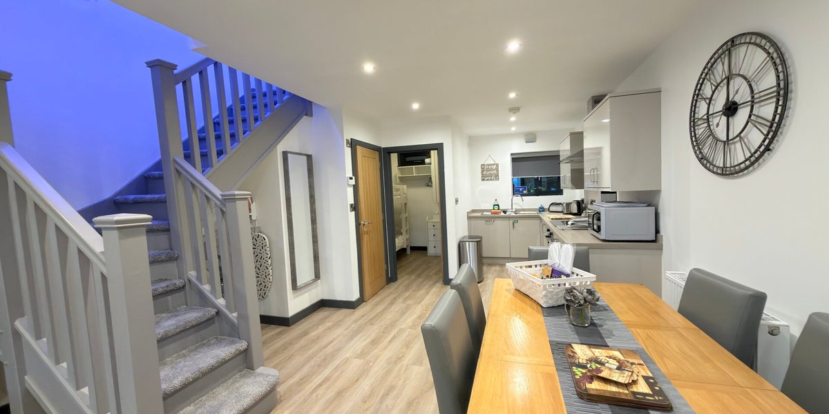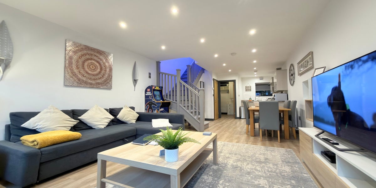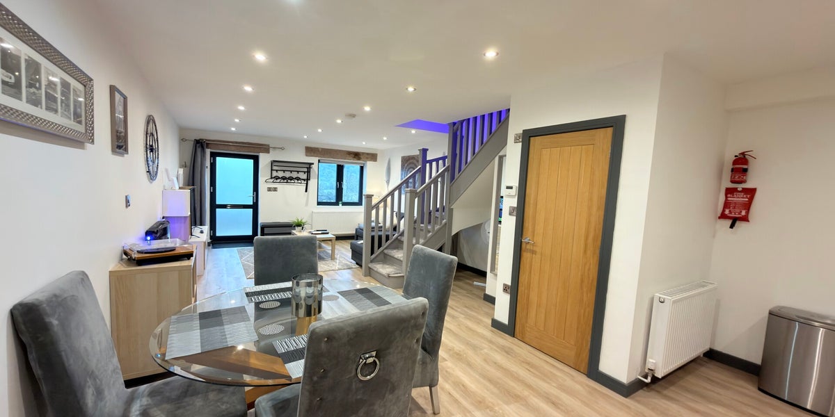 Chapel Row 3 is a spacious and beautifully presented two-bedroom cottage, ideal for families or small groups of up to six guests. Upstairs features a comfortable double bedroom and shower room, while downstairs offers a cosy bunk bedroom and a stylish living area with a sofa bed. A fully equipped kitchen with dishwasher, and a classic Pac-Man arcade machine add both convenience and a fun, unique touch, creating a relaxed, home-from-home stay with plenty of space to unwind.