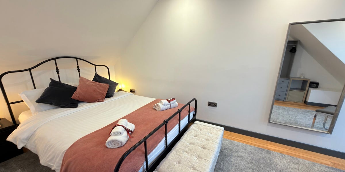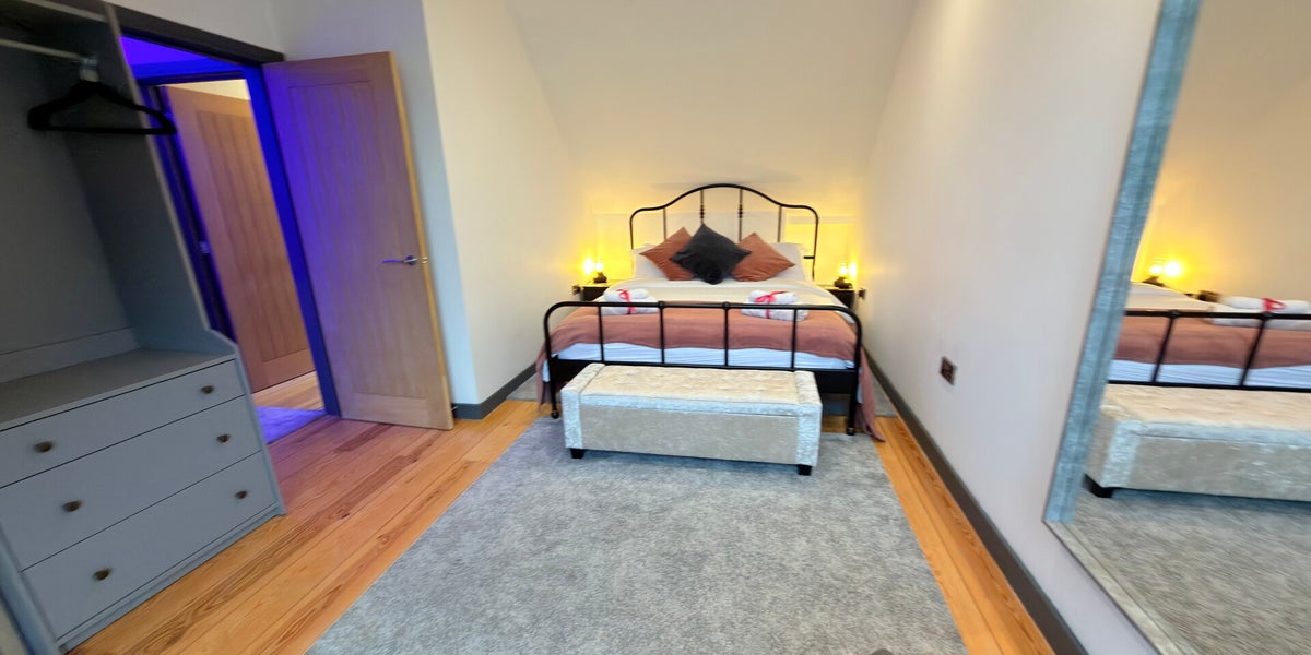 A spacious, indulgent cottage designed for the ultimate comfort. Upstairs boasts a luxurious super king-size bed, private TV, and a lavish bathroom with double jacuzzi bath, overhead shower, and his-and-hers sinks. Downstairs offers a generous living area with sofa bed, TV, and classic Pac-Man arcade machine, alongside a fully equipped kitchen and elegant dining space. Finished to the highest standard, it provides a stylish, playful, and home-from-home stay.